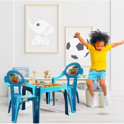 2 ta stulli bolalarning rangli ko'k avtomobili bilan bolalar o'quv stol dasturi