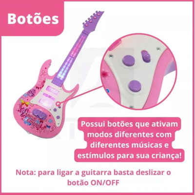 Guitara sizning kichkintoyingizni haqiqiy bolalarning musiqiy asbobidan foydalanish hissi bilan ta'minlaydi va 5 yosh yoki undan katta bolalar uchun ajoyib sovg'a variantidir. Tugmachalarni bosib, interfaol o'yinchoq tovushlar va chiroqlarni ishlab chiqaradi
